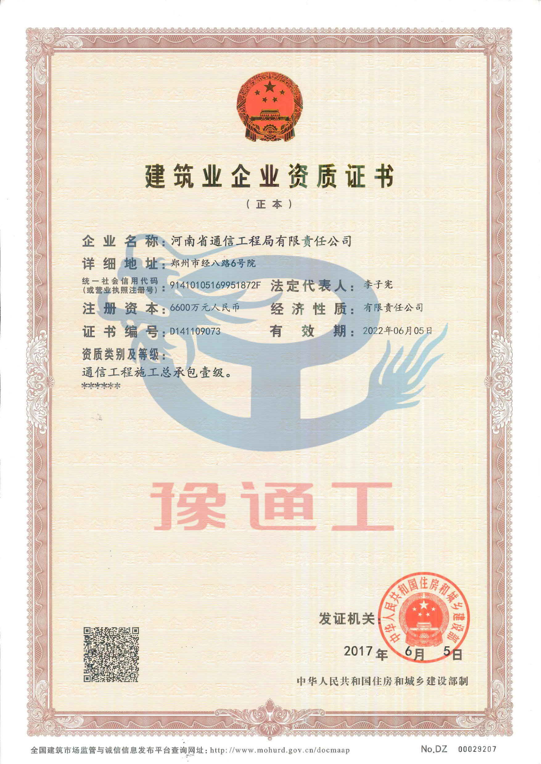 通信工程施工總承包壹級