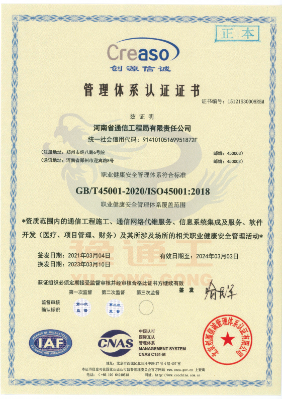 管理體系認證證書(職業(yè)健康安全管理)