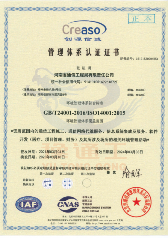 管理體系認證證書(環(huán)境管理)